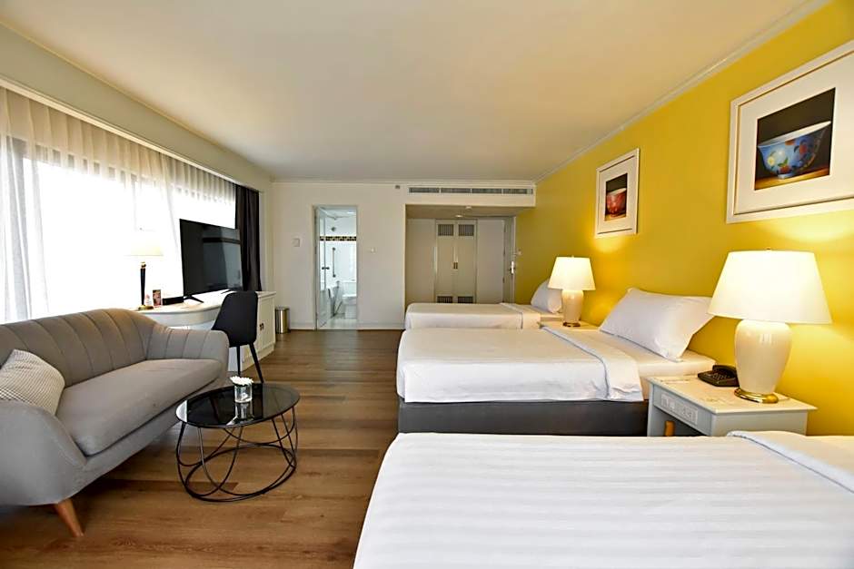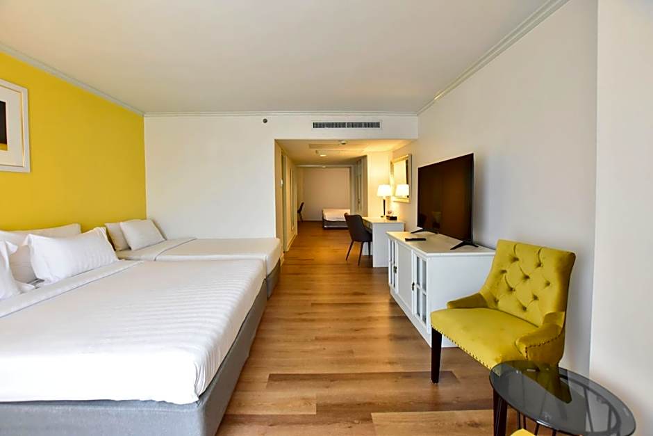 Offering free toiletries, this family room includes a private bathroom with a bidet, a hairdryer and slippers. The spacious air-conditioned family room offers a flat-screen TV with satellite channels, a mini-bar, a seating area, a wardrobe as well as city views. The unit offers 3 beds.
